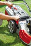 Функция 4 в 1: Кошение, сбор, мульчирование, боковой выброс. Централизованная 7-ступенчатая регулировка высоты среза. Травосборник объемом 70 л с системой простой навески EasyClick и индикатором уровня заполнения. Фронтальная ручка для удобной транспортировки. Колеса легкого хода XXL. С приводом на колеса и регулировкой скорости.